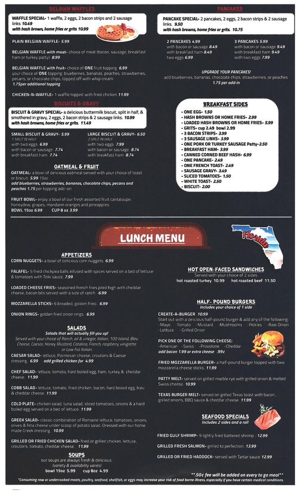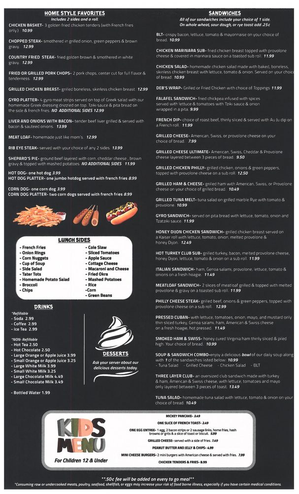With a focus on desserts, seafood, and breakfast & brunch, Cozy Oaks Restaurant offers a diverse menu to satisfy any craving. Located at 1201 E Orange St in Lakeland, FL, this restaurant provides a cozy and casual dining experience with options for outdoor seating and private dining. Their menu features delicious dishes like French Toast Special, Omelets with a variety of ingredients, and Pancake Specials served with sides like hash browns and home fries. Whether you're looking for a hearty breakfast or a satisfying seafood dish, Cozy Oaks Restaurant has something for everyone. The restaurant also offers amenities such as takeout, delivery, and catering services. Don't miss out on their happy hour specials and enjoy a relaxing meal in a welcoming environment.